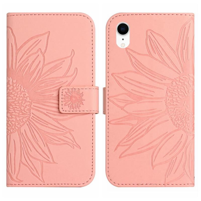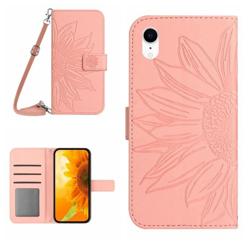 Θήκη τηλεφώνου από δέρμα με σχέδιο ηλιοτρόπιου και αίσθηση δέρματος για iPhone XR, με λουρί (Κόκκινο)