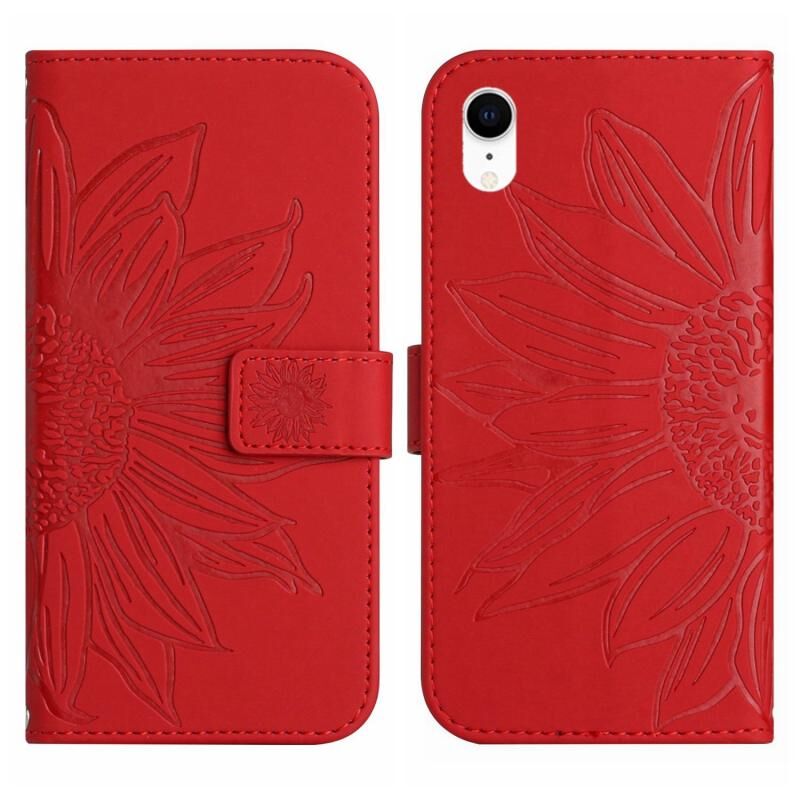 Θήκη τηλεφώνου από δέρμα με σχέδιο ηλιοτρόπιου και αίσθηση δέρματος για iPhone XR, με λουρί (Κόκκινο)
