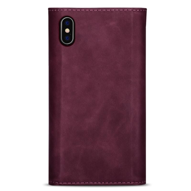 Θήκη δέρματος οριζόντιας αναδίπλωσης για iPhone XR με αίσθηση δέρματος, φερμουάρ, θήκη, υποδοχές καρτών, κορνίζα φωτογραφιών, κορδόνι και μακρύ σχοινί (Κρασί)
