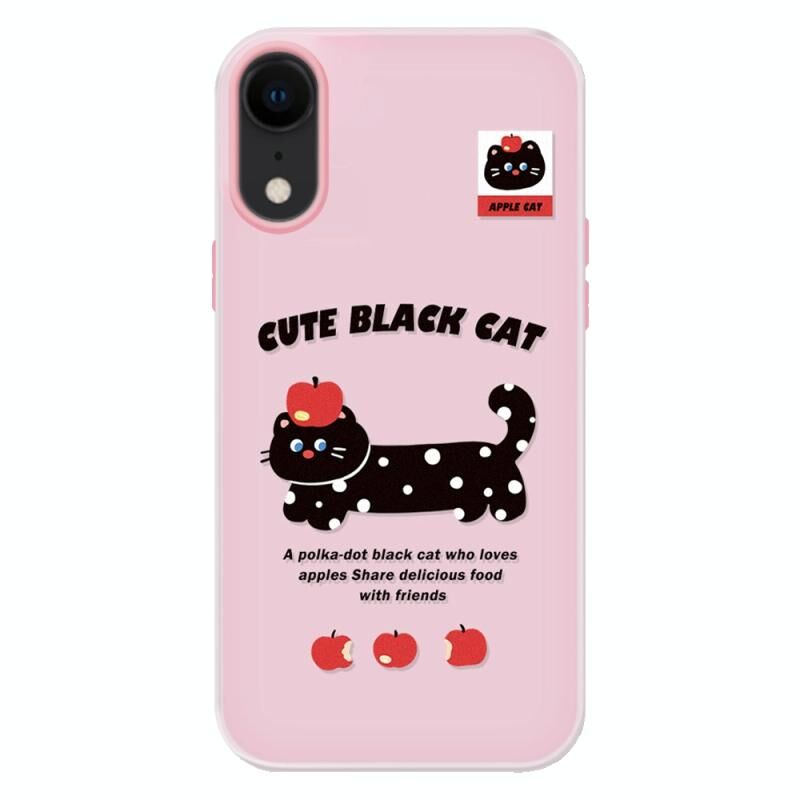 For iPhone XR Skin Feeling Jelly TPU Hybrid PC Phone Case(Apple Black Cat Pink)