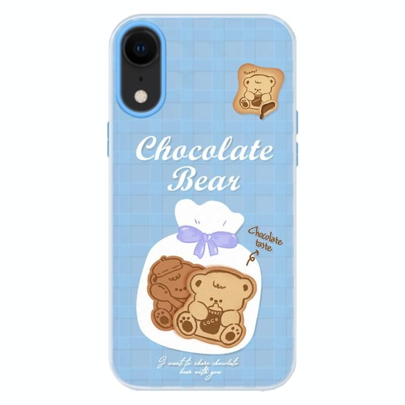 Θήκη τηλεφώνου για iPhone XR, υβριδική από TPU και PC, με αίσθηση ζελέ (Biscuit Bear Blue)
