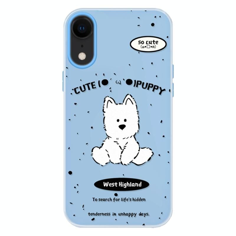 Θήκη τηλεφώνου για iPhone XR, υβριδική από TPU και PC, με αίσθηση ζελέ (Line Dog Blue)