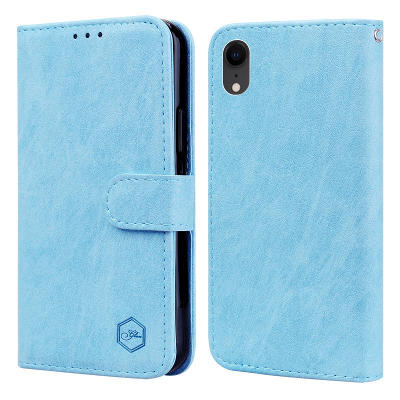 For iPhone XR Skin Feeling Oil Leather Texture PU + TPU Phone Case(Light Blue)