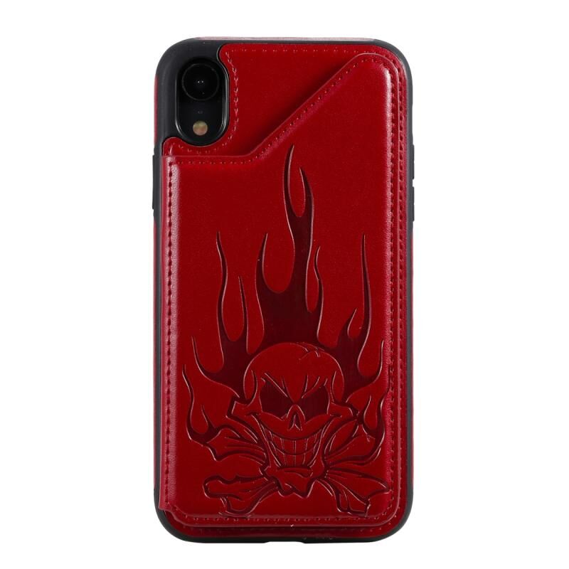 For iPhone XR Skull Head Embossing Pattern Shockproof Protective Case with Holder & Card Slots & Wallet(Red)