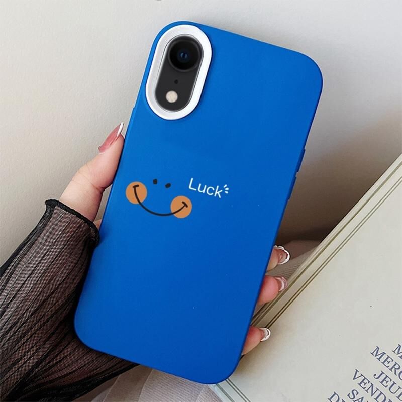 Θήκη τηλεφώνου για iPhone XR, Υβριδική TPU από PC με χαμογελαστό πρόσωπο (Βασιλικό Μπλε)