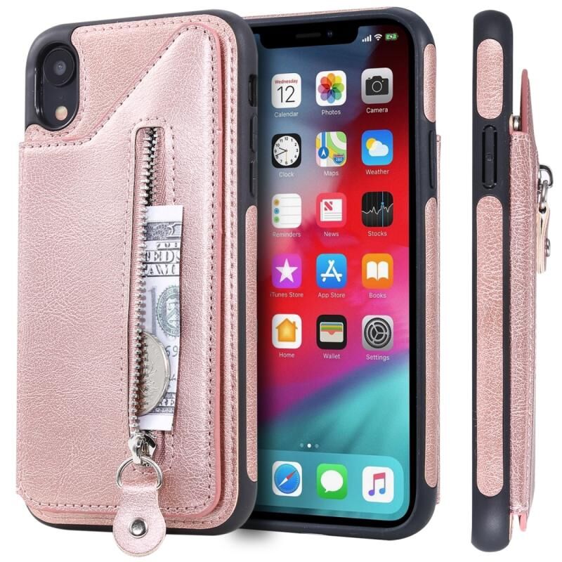 Θήκη προστασίας για iPhone XR, μονόχρωμη, με διπλή αγκράφα και φερμουάρ, αντικραδασμική (Μωβ)