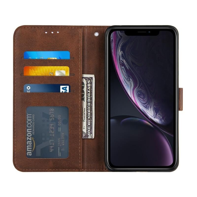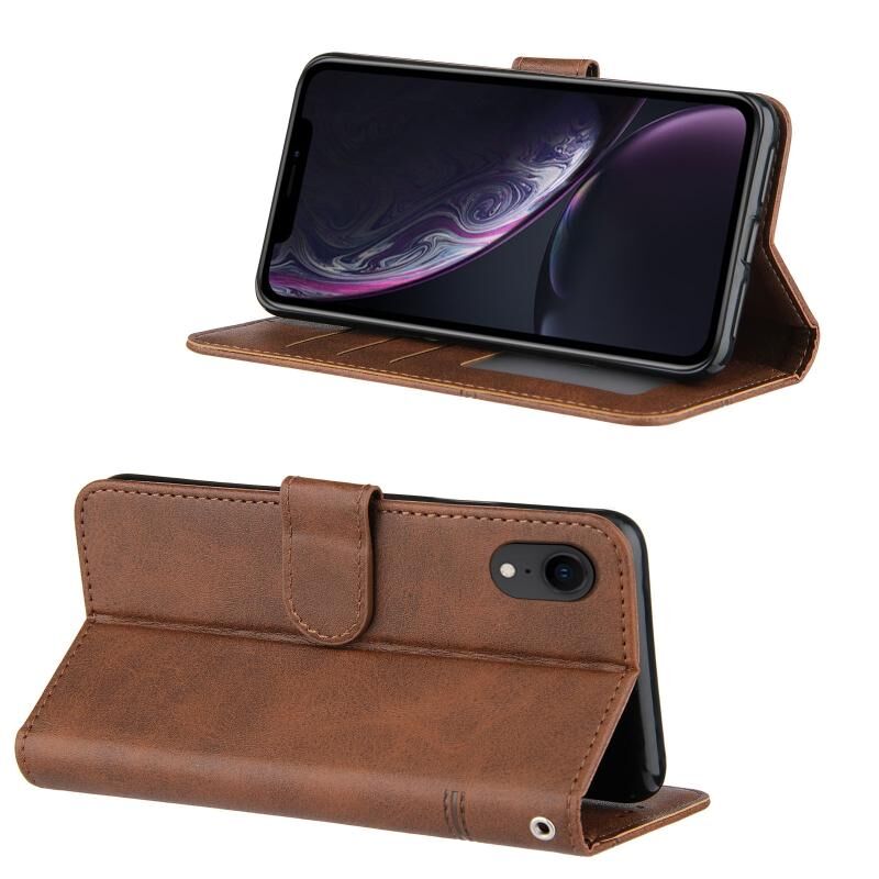 Θήκη για iPhone XR, Δερμάτινη, Οριζόντια, με Στεγανή Ραφή, Υφή Μοσχαριού, Αγκράφα, με Θήκη, Θήκες Καρτών, Πορτοφόλι & Λουρί (Μαύρο)