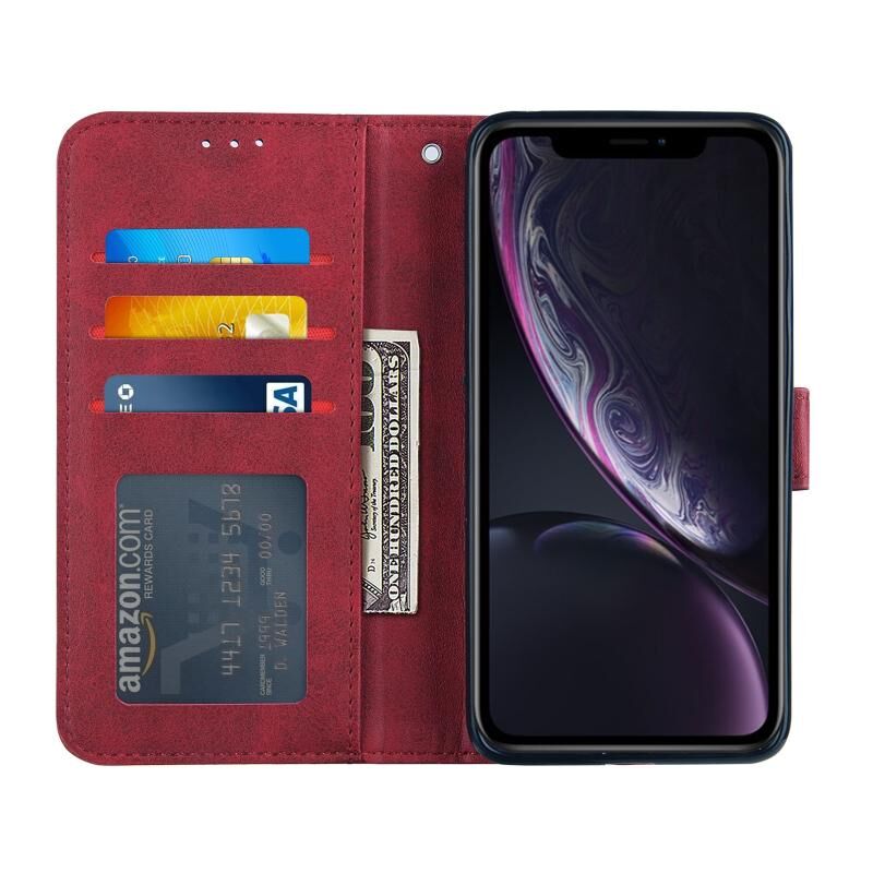 Θήκη για iPhone XR, Δερμάτινη, Οριζόντια, με Στεγανή Ραφή, Υφή Μοσχαριού, Αγκράφα, με Θήκη, Θήκες Καρτών, Πορτοφόλι & Λουρί (Μαύρο)