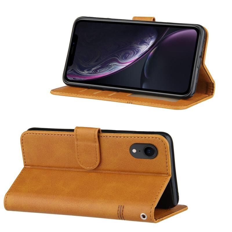Θήκη για iPhone XR, Δερμάτινη, Οριζόντια, με Στεγανή Ραφή, Υφή Μοσχαριού, Αγκράφα, με Θήκη, Θήκες Καρτών, Πορτοφόλι & Λουρί (Μαύρο)