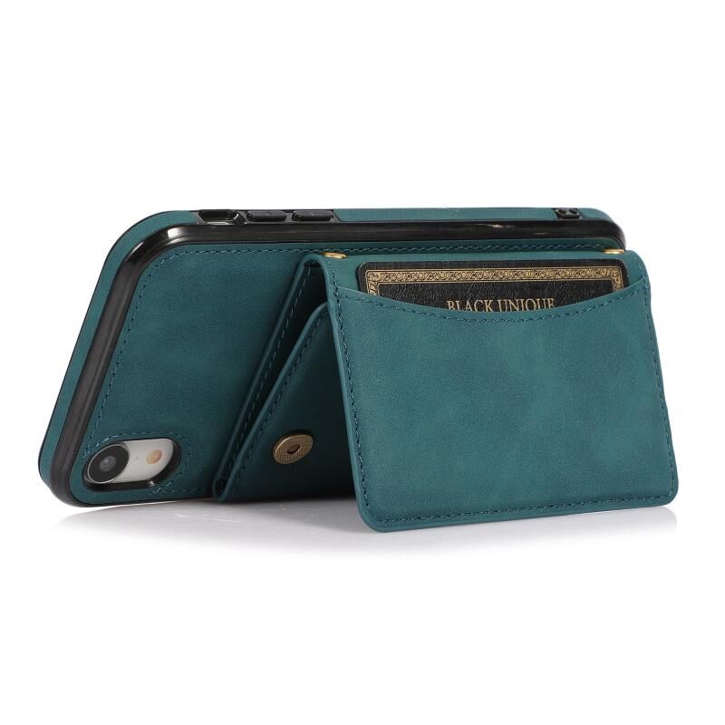 Θήκη Τριπλού Δέρματος για iPhone XR με Θήκη Κάρτας & Πορτοφόλι & Στήριξη (Κόκκινο Κρασί)