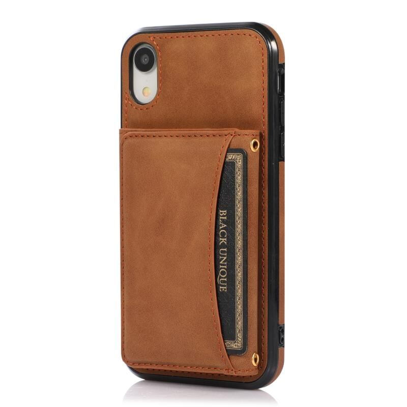 Θήκη Τριπλού Δέρματος για iPhone XR με Θήκη Κάρτας & Πορτοφόλι & Στήριξη (Κόκκινο Κρασί)
