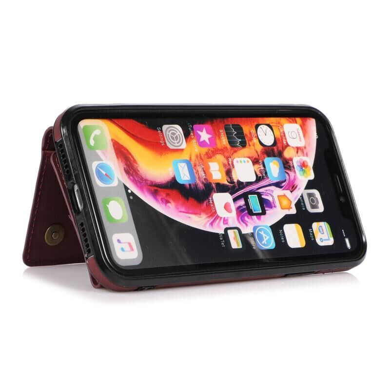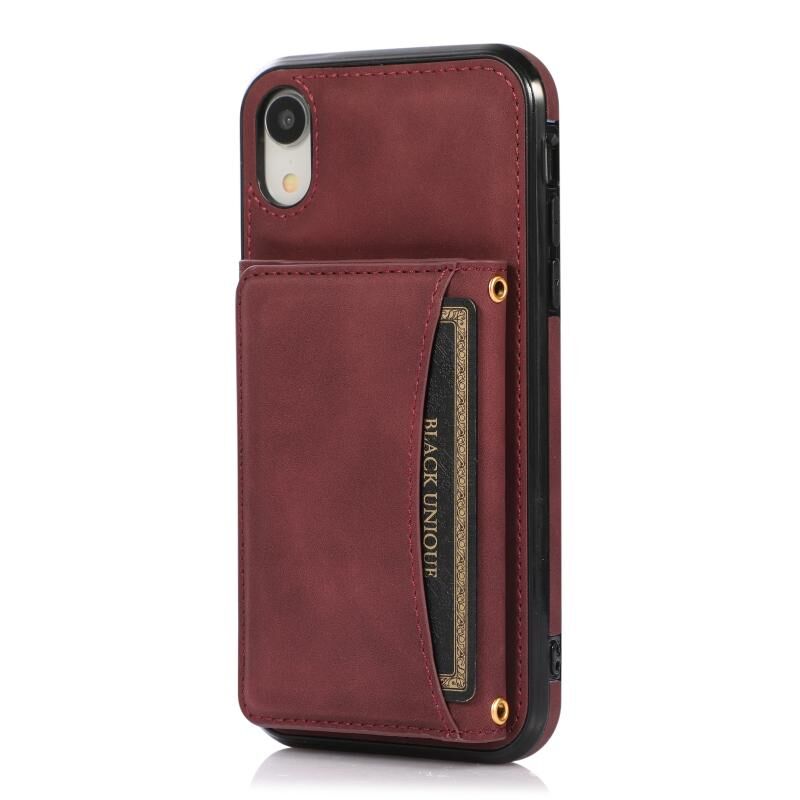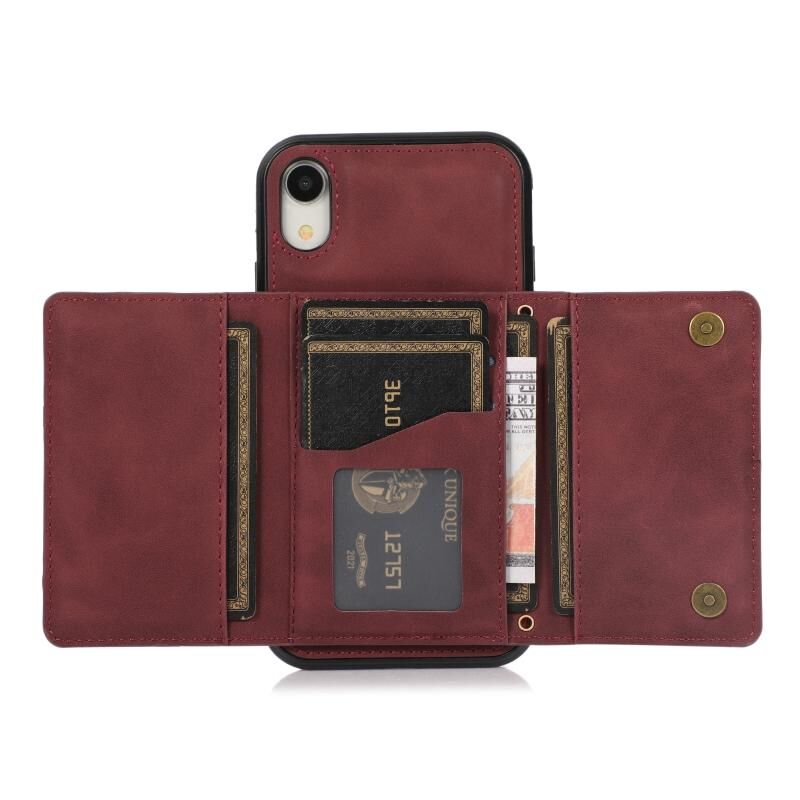 Θήκη Τριπλού Δέρματος για iPhone XR με Θήκη Κάρτας & Πορτοφόλι & Στήριξη (Κόκκινο Κρασί)