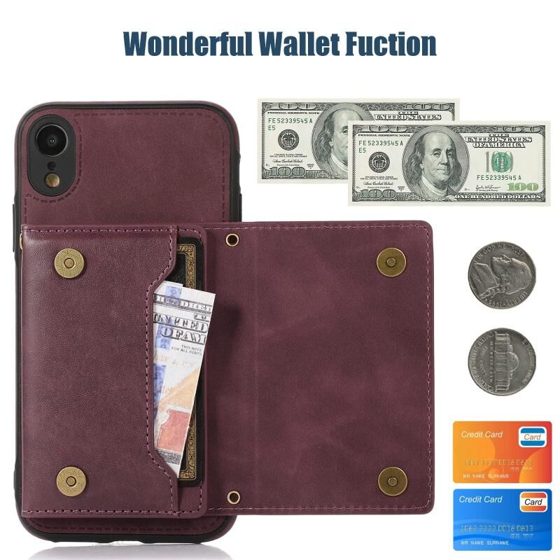 Θήκη τηλεφώνου από δέρμα με τριπλή αναδίπλωση και προστασία RFID για iPhone XR με κορδόνι (Μαύρο)