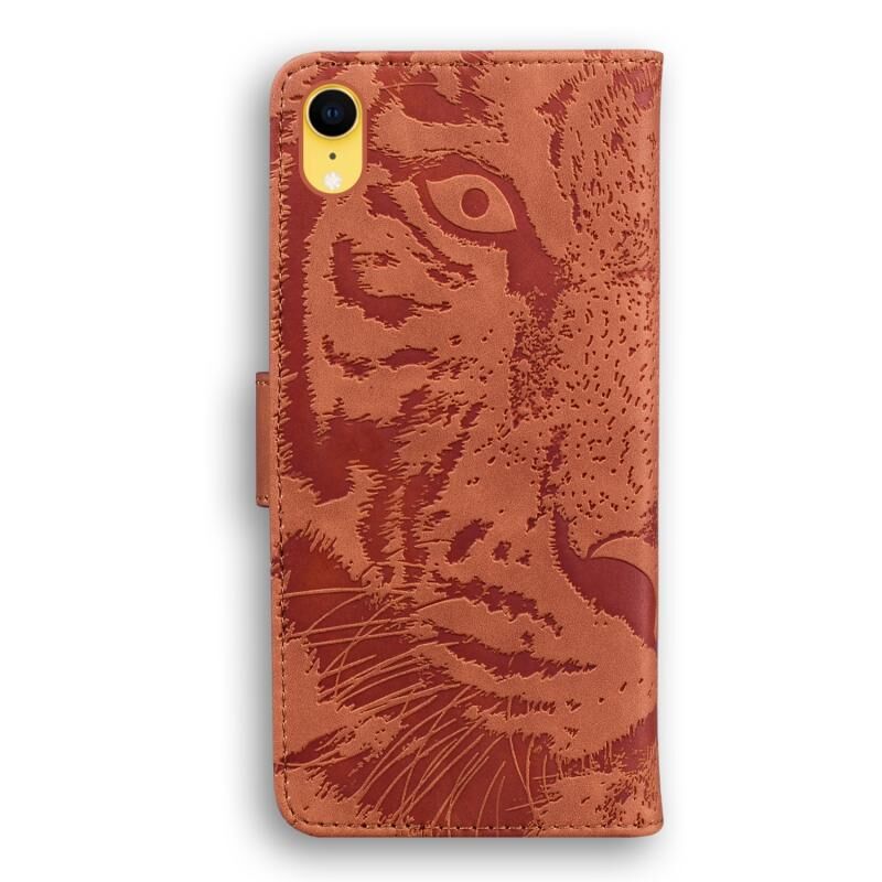 Θήκη για iPhone XR με ανάγλυφο σχέδιο τίγρης, οριζόντια, από δέρμα με βάση & θήκες για κάρτες & πορτοφόλι (Κόκκινο)