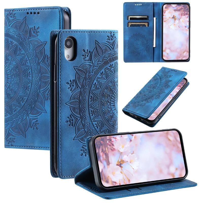Θήκη τηλεφώνου από δέρμα με μαγνητικό κούμπωμα και ανάγλυφο σχέδιο Totem για iPhone XR (Μπλε)