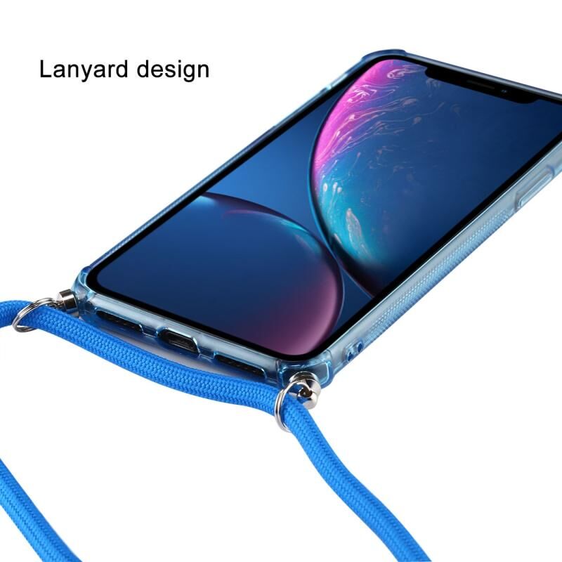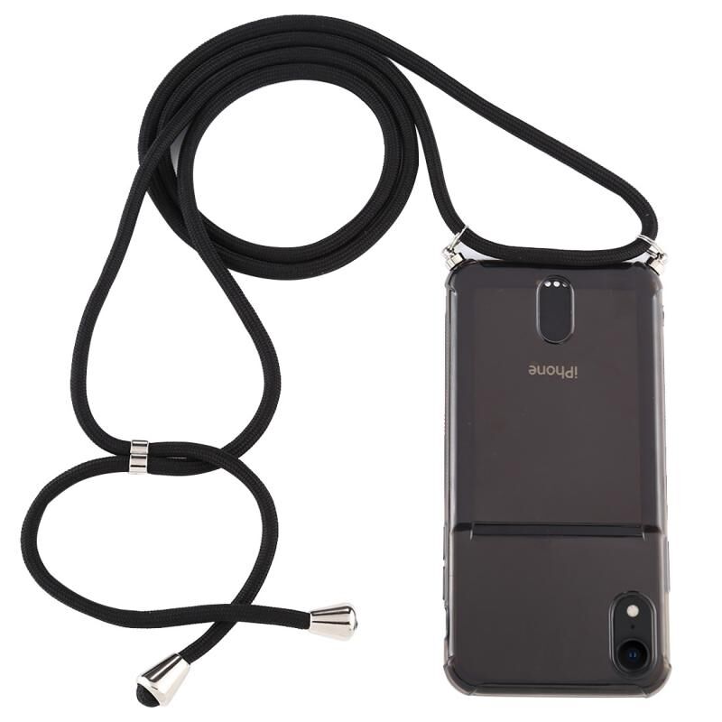Θήκη προστασίας για iPhone XR, διαφανής από TPU με λουρί και θήκη για κάρτες (Μαύρο)