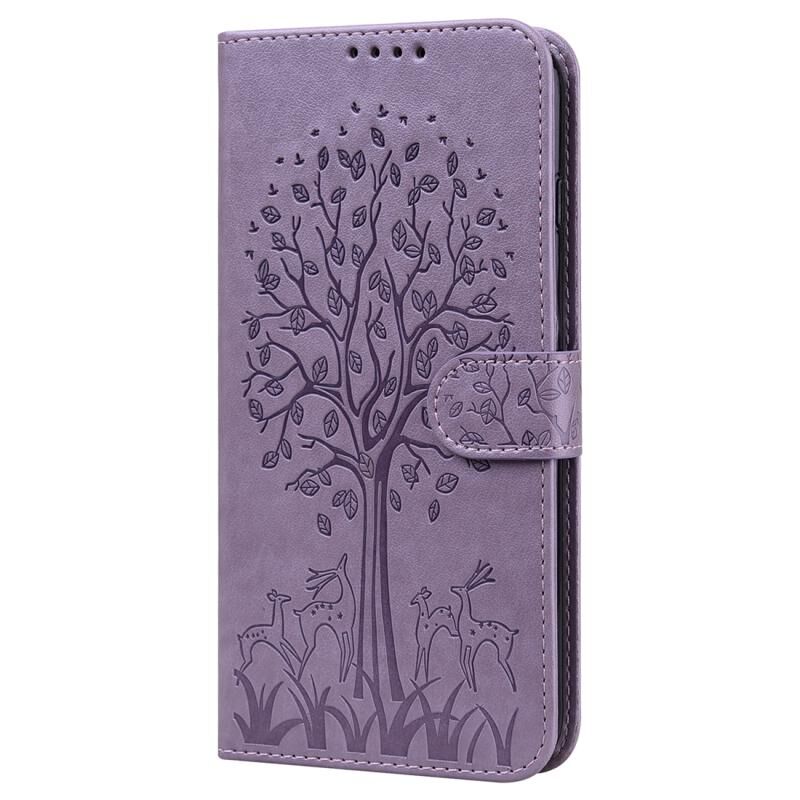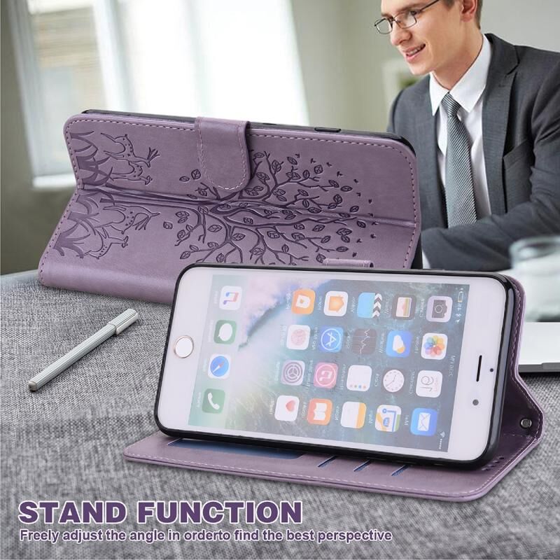 Θήκη τηλεφώνου δερμάτινη οριζόντιας αναδίπλωσης για iPhone XR με σχέδιο δέντρου & ελαφιού, με εκτύπωση (Ροζ)