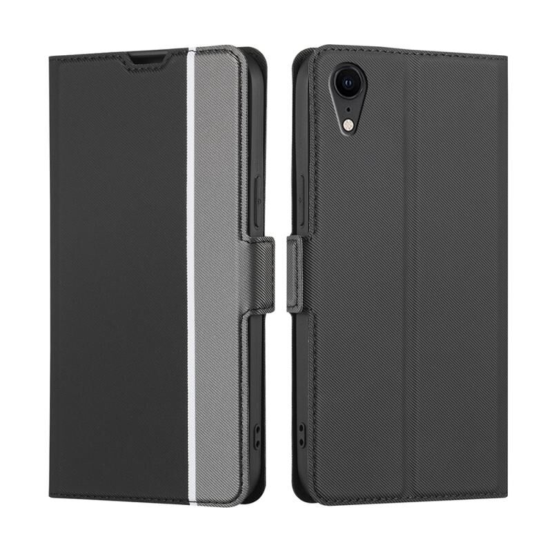 Θήκη τηλεφώνου από δέρμα με υφή twill για iPhone XR, με πλαϊνά κουμπιά (Μαύρο)