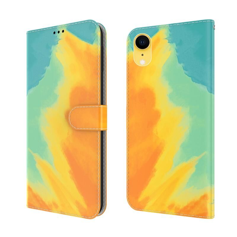 Θήκη δέρματος οριζόντιας αναδίπλωσης για iPhone XR με σχέδιο ακουαρέλας, με βάση & υποδοχή κάρτας & πορτοφόλι (Χρώμα Φθινοπτωμένου Φύλλου)
