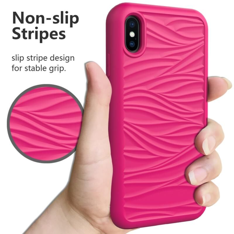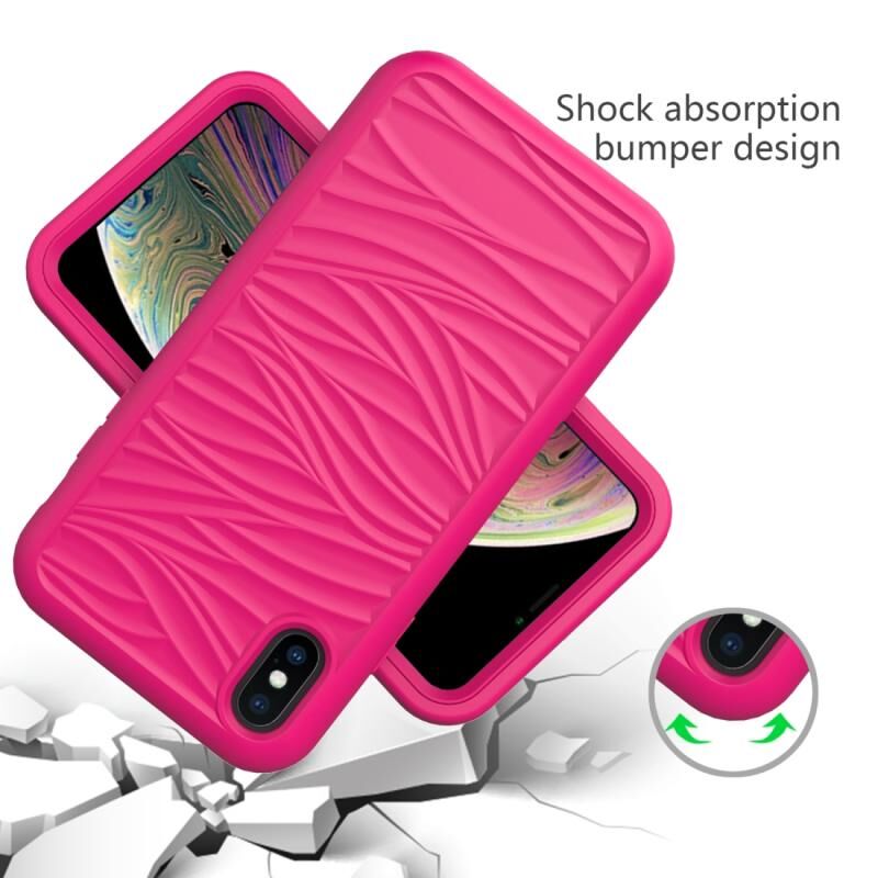 Θήκη Προστασίας 3 σε 1 από Σιλικόνη+PC για iPhone XR με Μοτίβο Κύματος, Αντικραδασμική (Hot Pink)