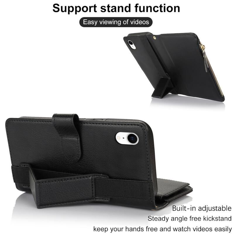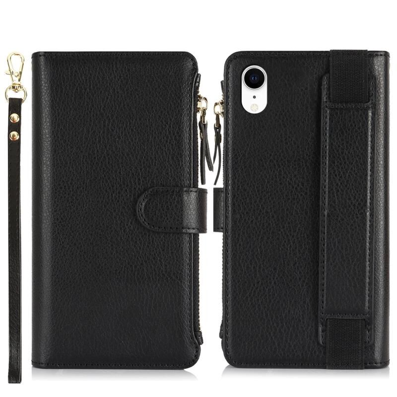 Θήκη για iPhone XR με Βραχιόλι, Πορτοφόλι με Φερμουάρ, Δέρμα με Προστασία RFID (Μαύρο)