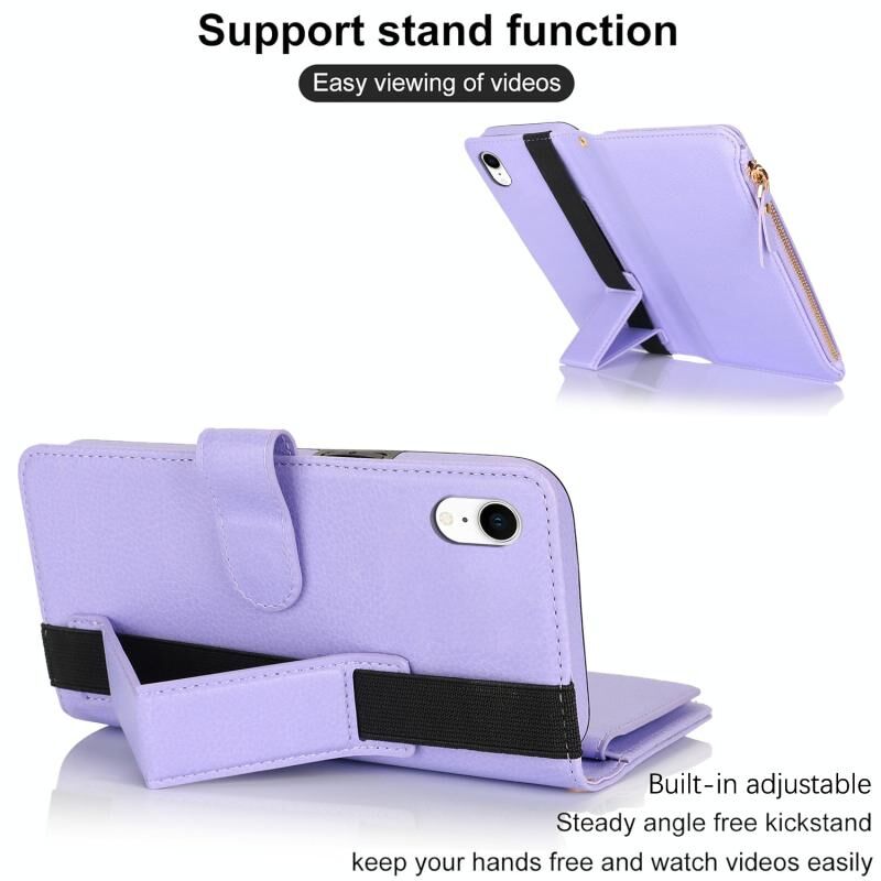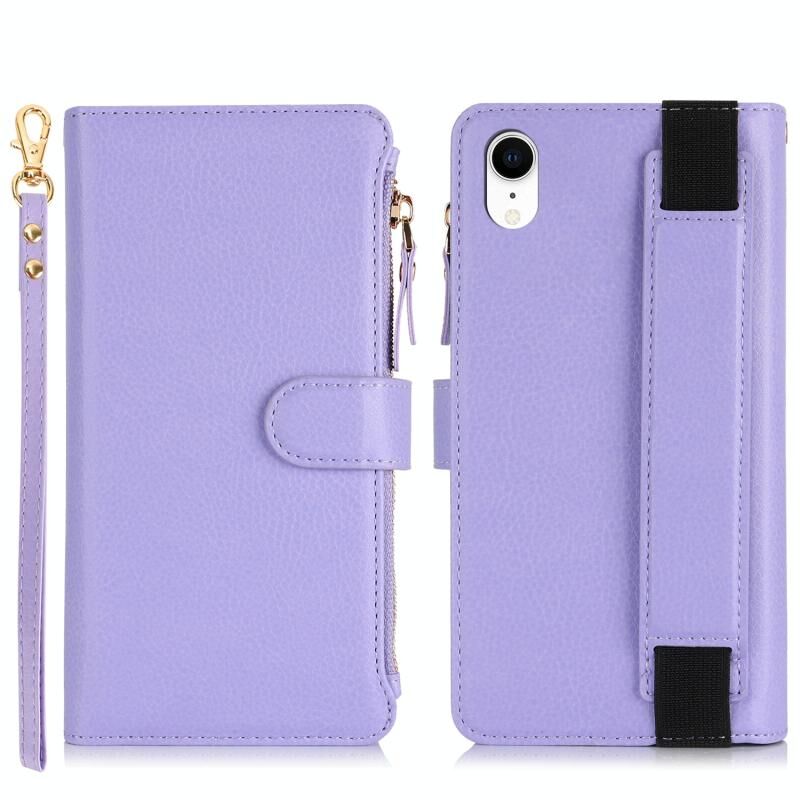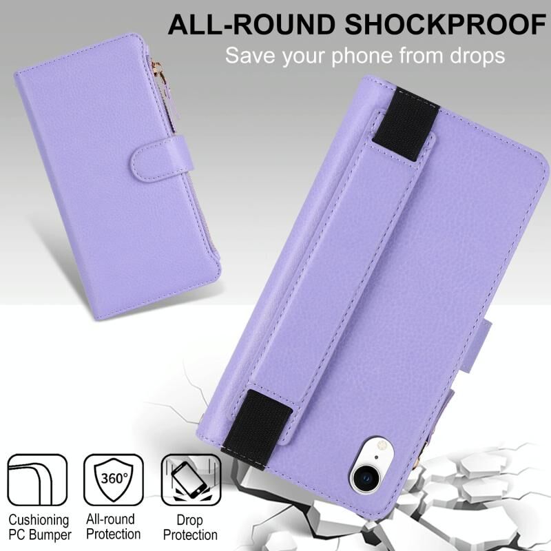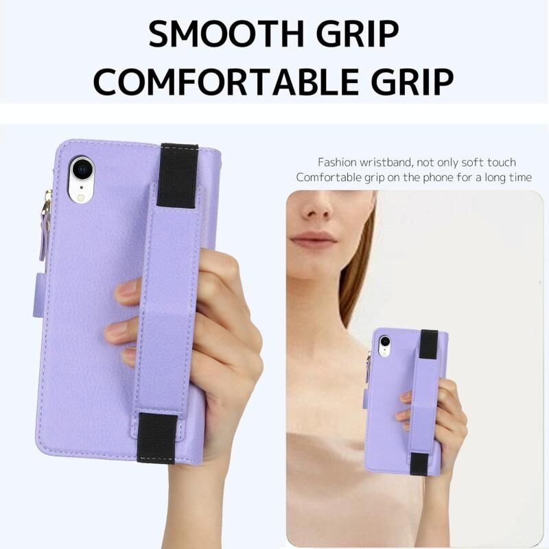 Θήκη για iPhone XR με Βραχιόλι, Πορτοφόλι με Φερμουάρ, Δέρμα με Προστασία RFID (Μαύρο)