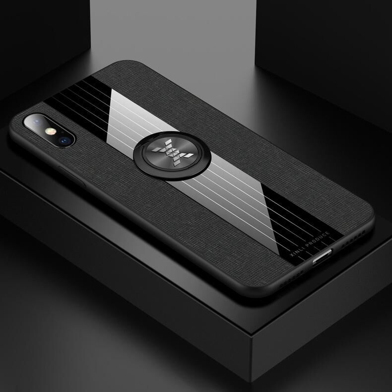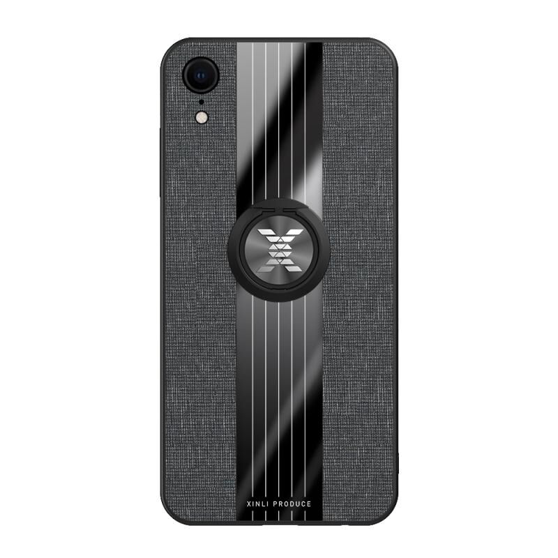 Θήκη προστασίας TPU με υφή ραφής υφάσματος αντικραδασμική για iPhone XR XINLI με βάση δακτυλιδιού (Μαύρο) (XINLI)