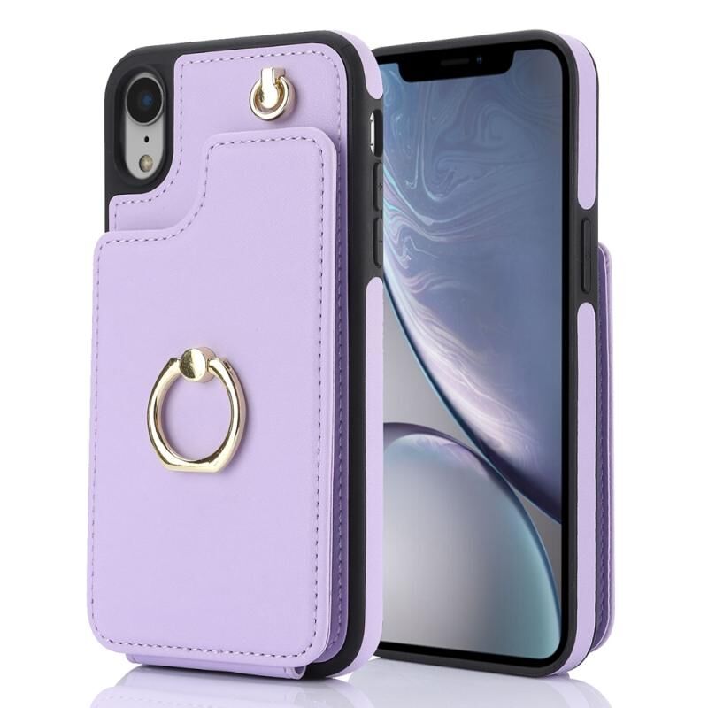 Θήκη κινητού τηλεφώνου με υφή δέρματος για iPhone XR YM005 με μακρύ κορδόνι (ανοιχτό μωβ)