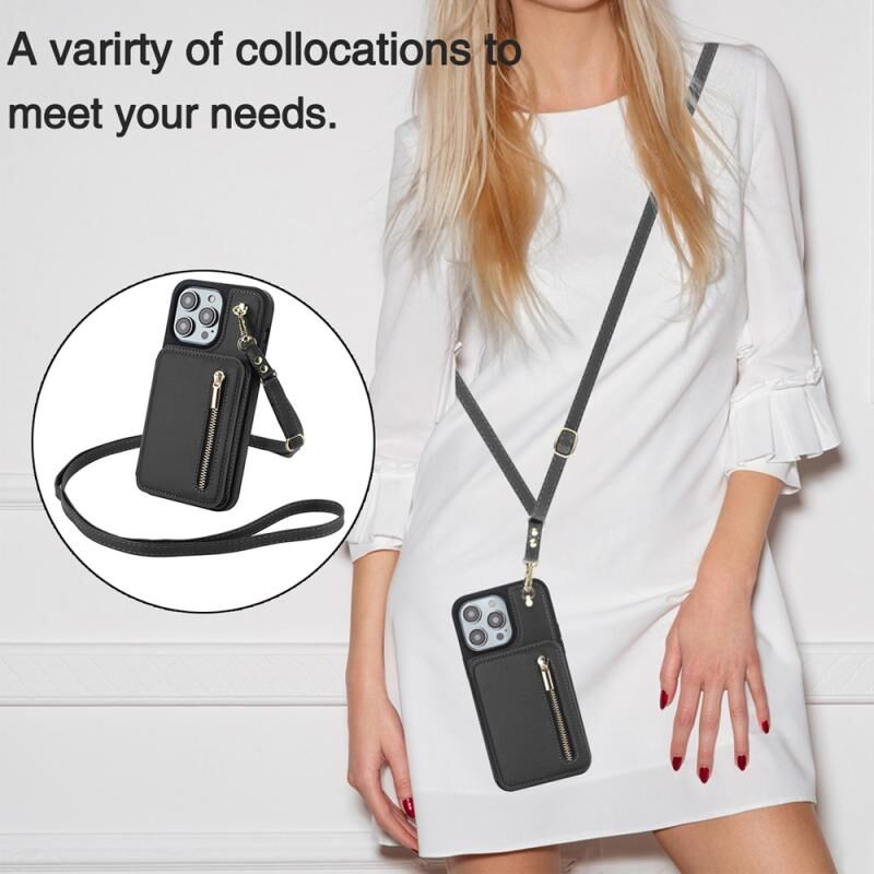 Θήκη κινητού τηλεφώνου για iPhone XR YM006 με υφή δέρματος, φερμουάρ και τσέπη για κάρτες, με διπλό κορδόνι (Σκούρο Μωβ)