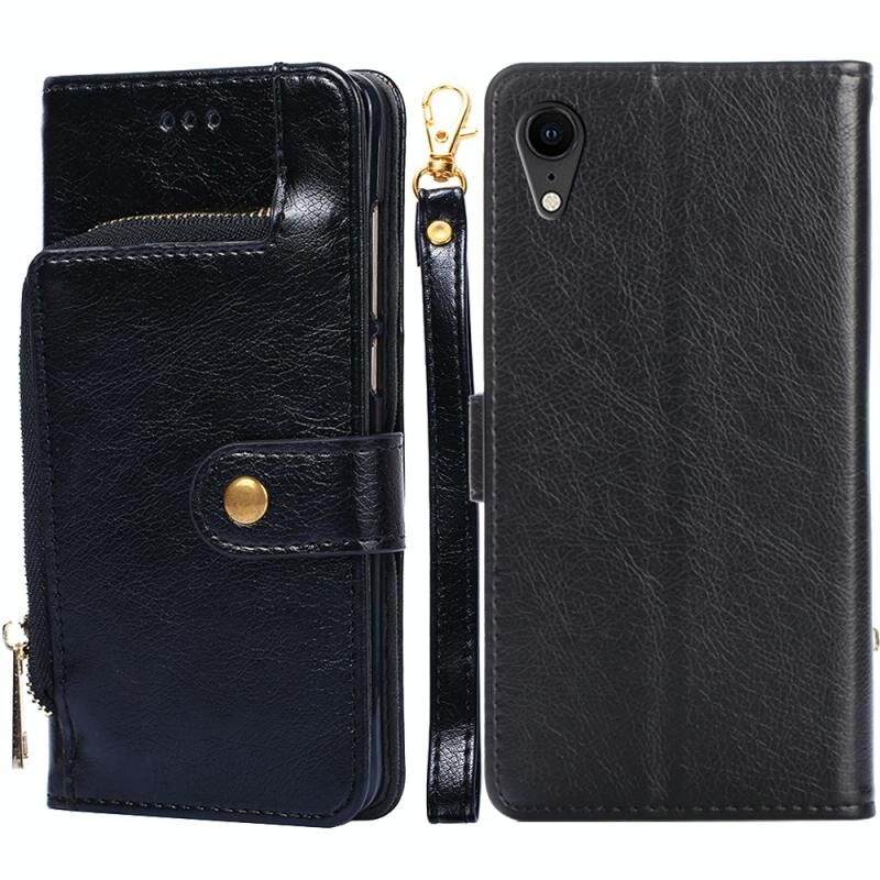 Θήκη για iPhone XR, Δερμάτινη θήκη με οριζόντιο άνοιγμα, PU + TPU, με θήκη, υποδοχή κάρτας, πορτοφόλι & λουρί (Μαύρο)