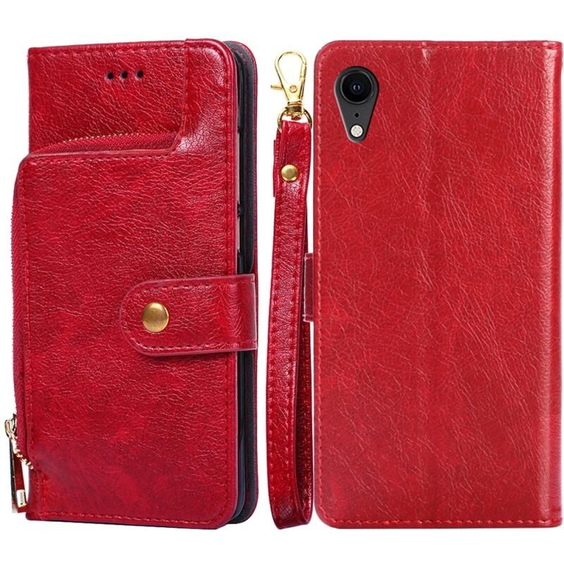 Θήκη για iPhone XR, Δερμάτινη θήκη με οριζόντιο άνοιγμα, PU + TPU, με θήκη, υποδοχή κάρτας, πορτοφόλι & λουρί (Μαύρο)