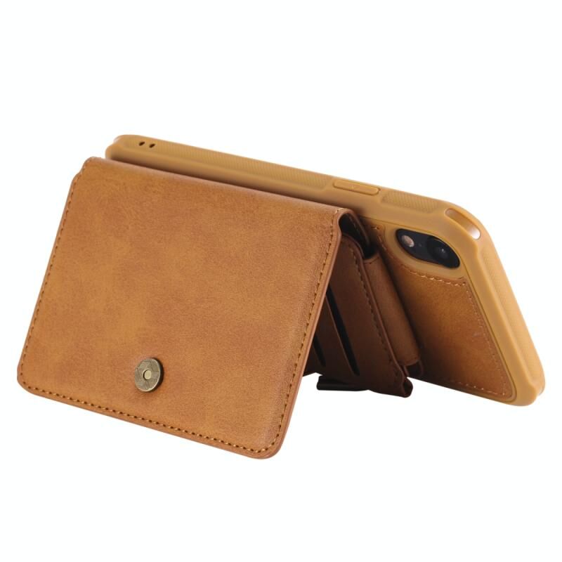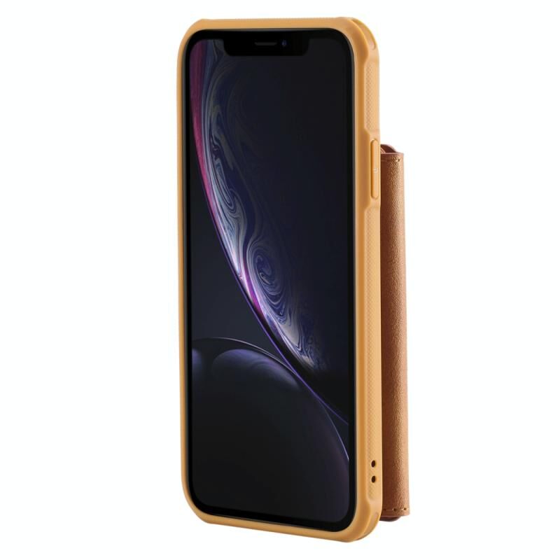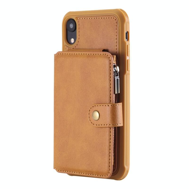 Θήκη προστασίας με φερμουάρ, αντικραδασμική για iPhone XR με υποδοχές καρτών & βάση στήριξης & θήκη φωτογραφιών & λειτουργία πορτοφολιού (Καφέ)
