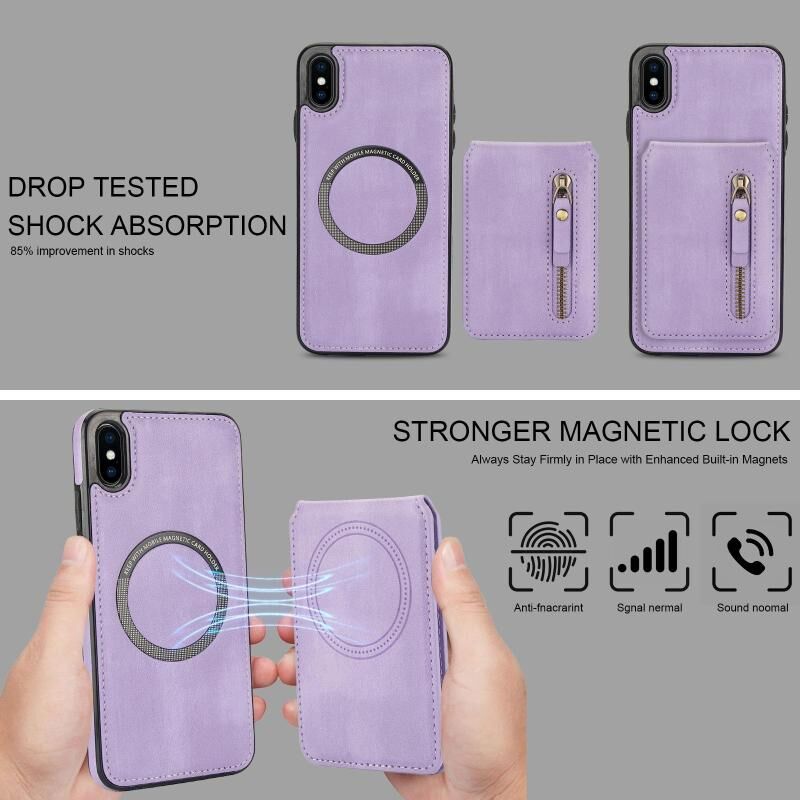 For iPhone XR Zipper Wallet Split MagSafe Leather Back Phone Case(Purple)