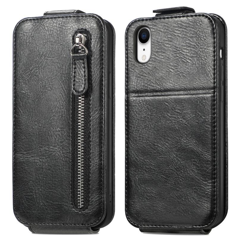 Θήκη τηλεφώνου για iPhone XR με φερμουάρ, κάθετη, δερμάτινη (Μαύρο)