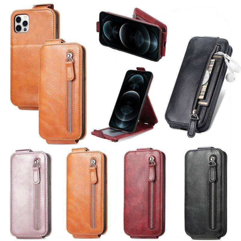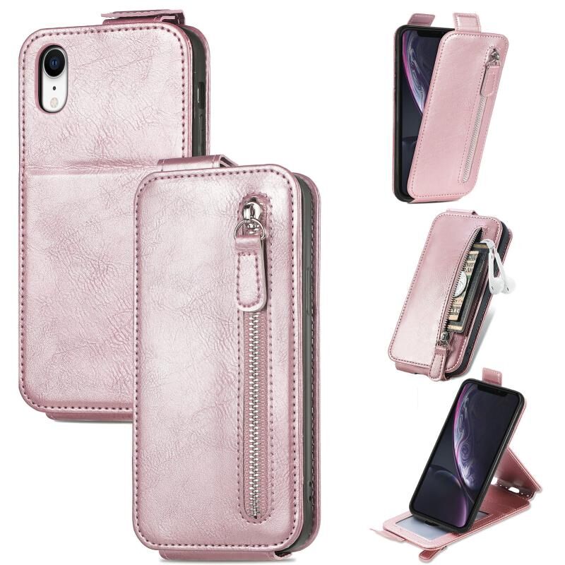 Θήκη τηλεφώνου για iPhone XR με φερμουάρ, κάθετη, δερμάτινη (Μαύρο)