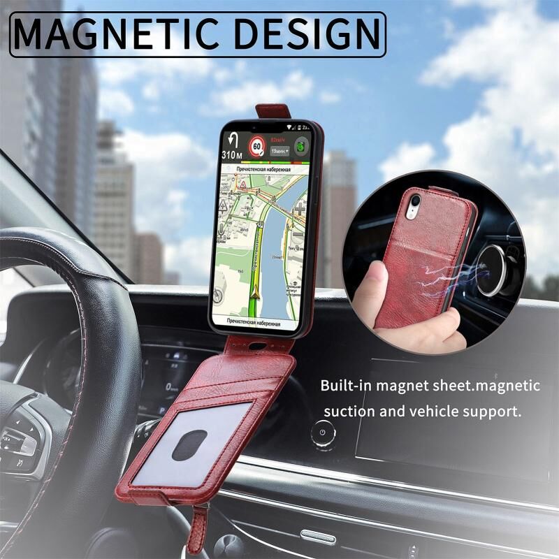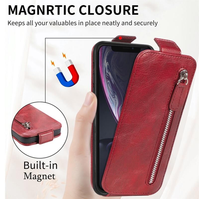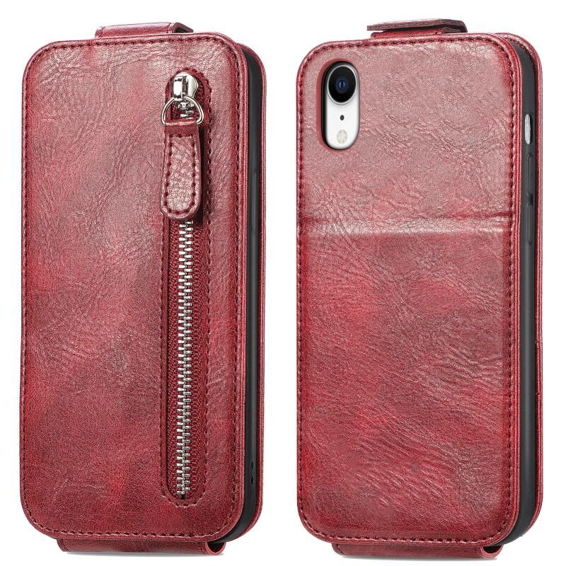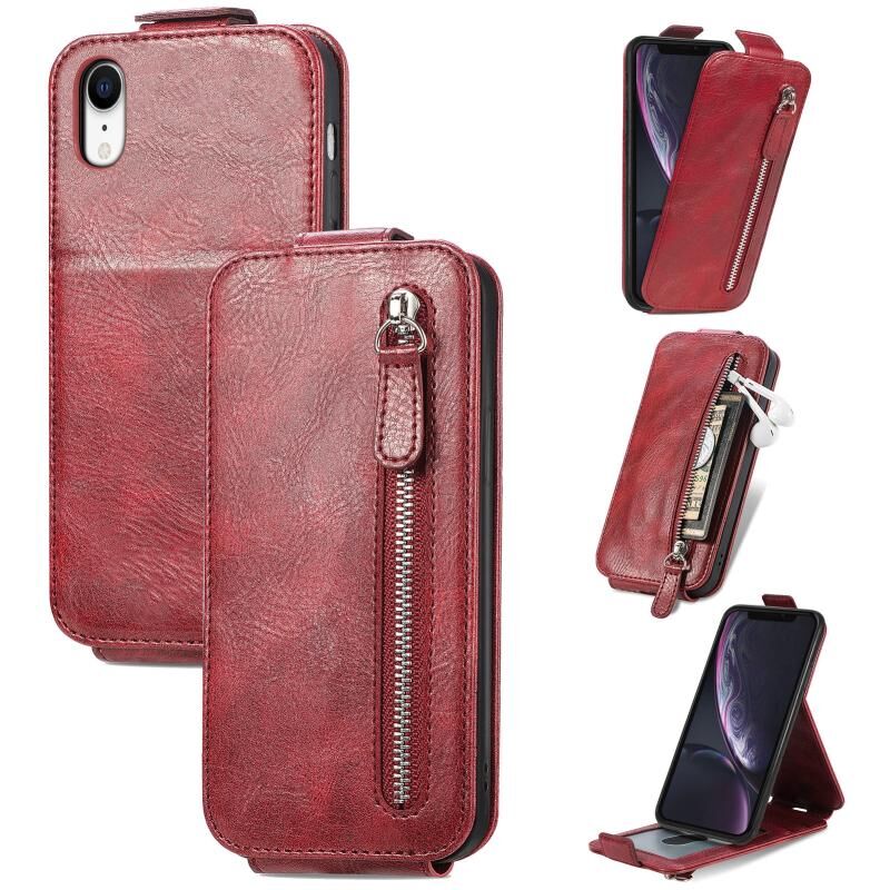 Θήκη τηλεφώνου για iPhone XR με φερμουάρ, κάθετη, δερμάτινη (Μαύρο)