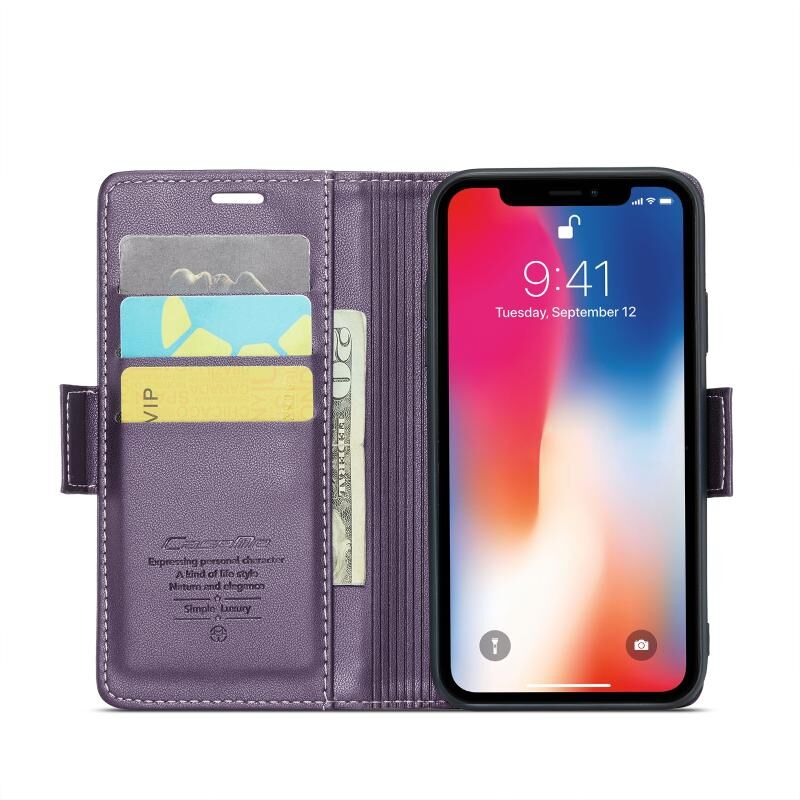 For iPhone XS CaseMe 023 Butterfly Buckle Litchi Texture RFID Anti-theft Leather Phone Case(Pearly Purple) (CaseMe)
