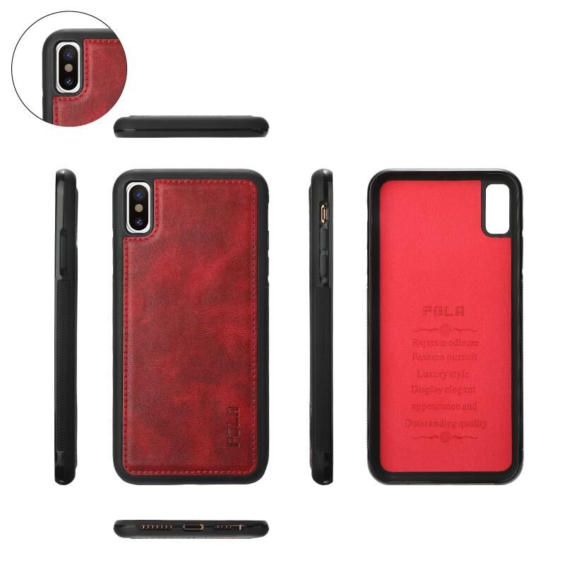 Θήκη τηλεφώνου για iPhone XS, πολυλειτουργική, δερμάτινη, με φερμουάρ και λουρί ώμου (Κόκκινη)