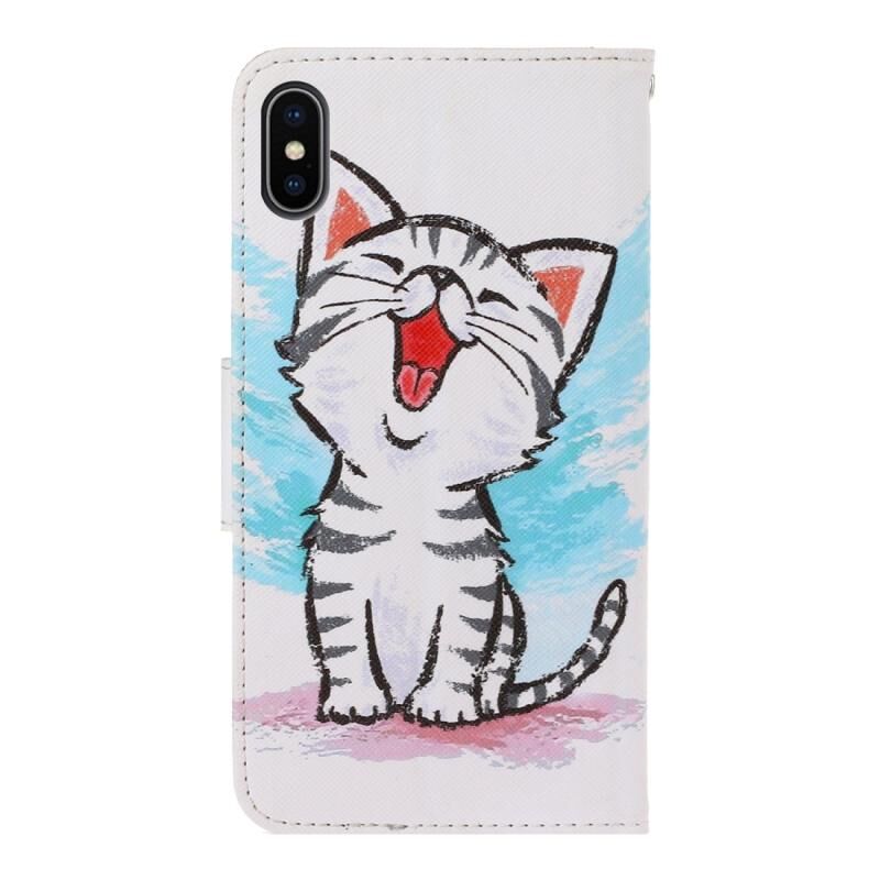 Θήκη για iPhone XS Max 3D με έγχρωμο σχέδιο, οριζόντια αναδιπλούμενη από δερματίνη PU με βάση & υποδοχές για κάρτες & πορτοφόλι (Κόκκινο Στόμα Γάτας)