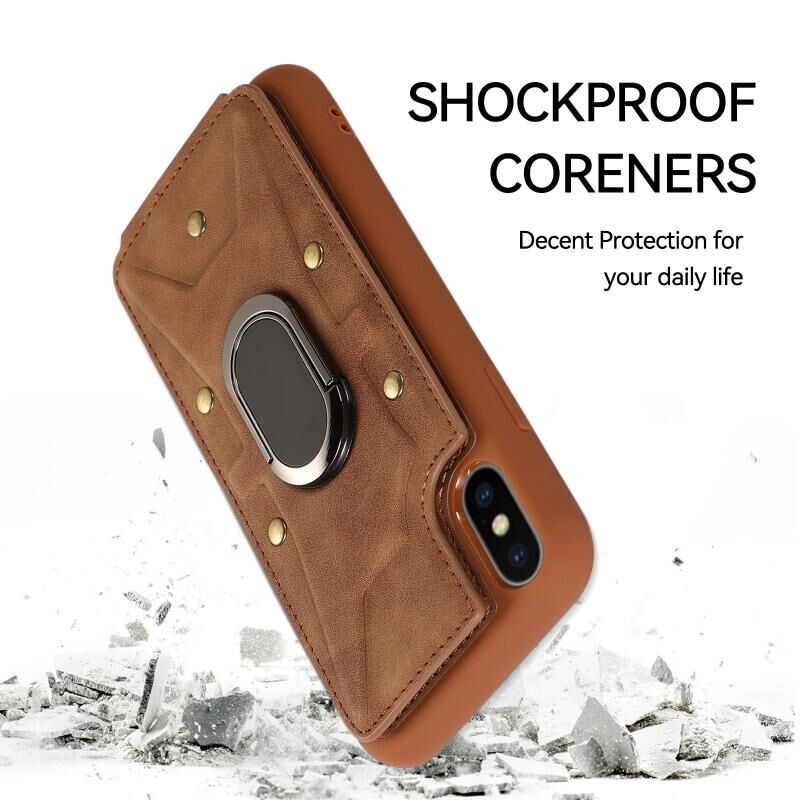 Θήκη κινητού τηλεφώνου με δακτύλιο και θήκη για κάρτες για iPhone XS Max (Καφέ)