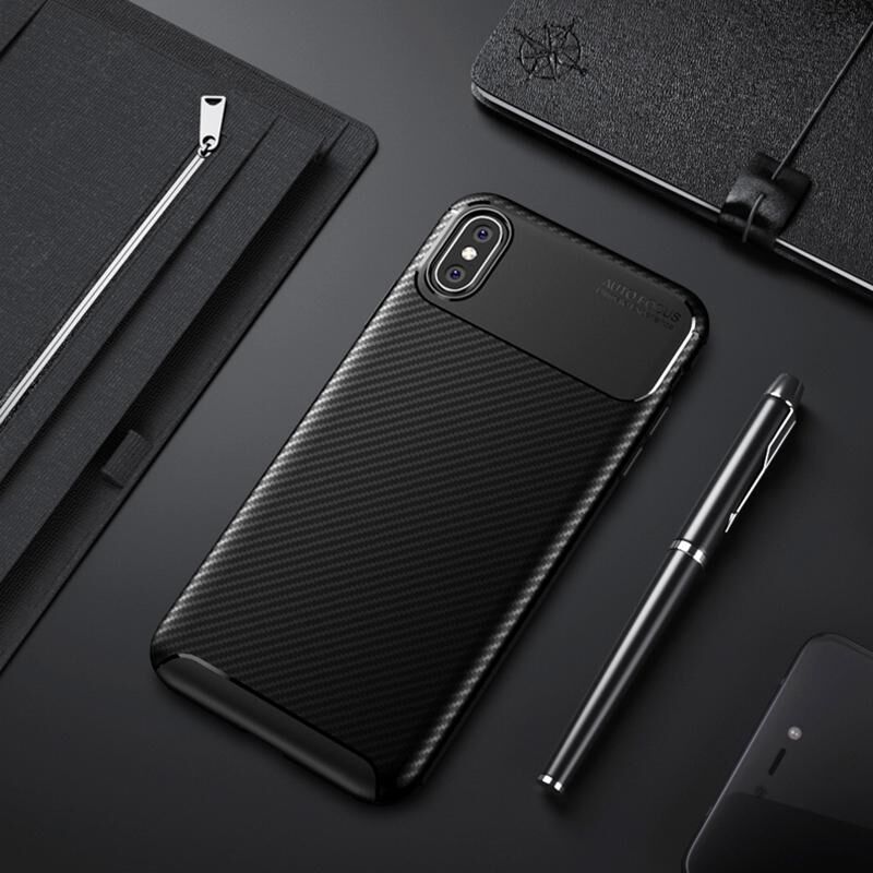 Θήκη για iPhone XS Max σε σχήμα σκαθαριού, με υφή ανθρακονήματος, αντικραδασμική από TPU (Μαύρο)