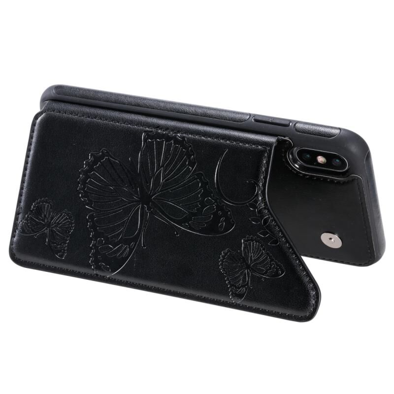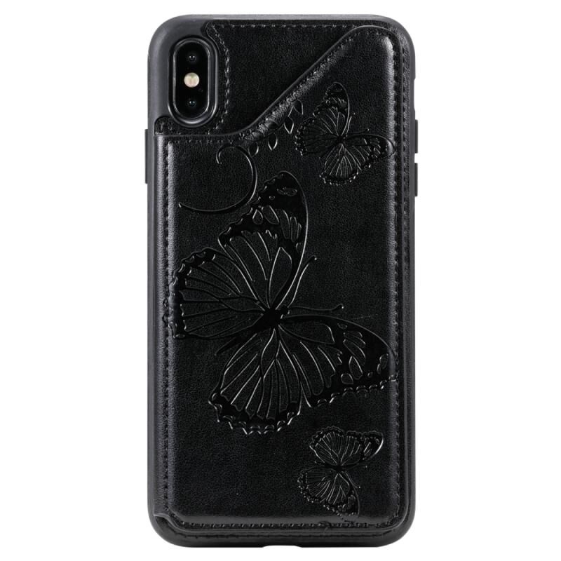 Θήκη προστασίας για iPhone XS Max με ανάγλυφο σχέδιο πεταλούδας, αντικραδασμική, με βάση στήριξης, θήκες για κάρτες & κορνίζα φωτογραφιών (Χρυσό Ρόδι)