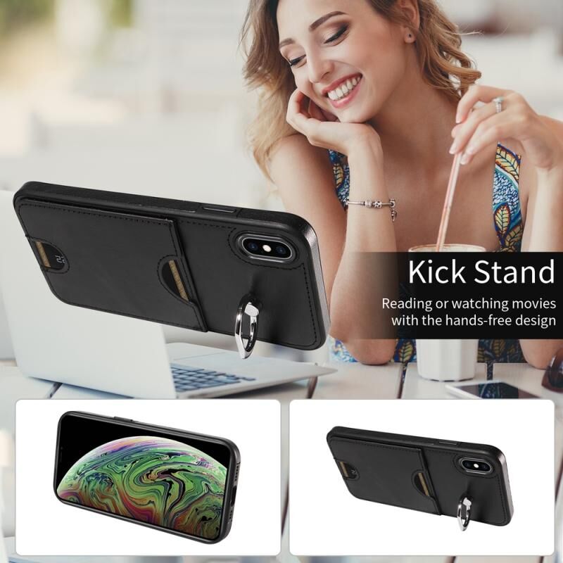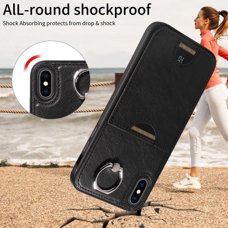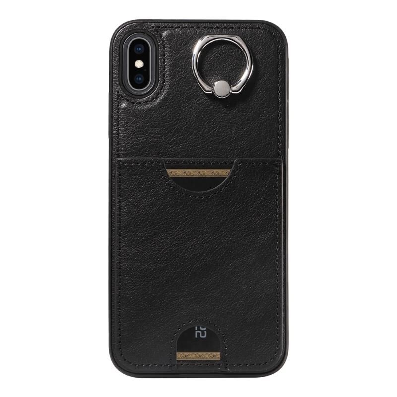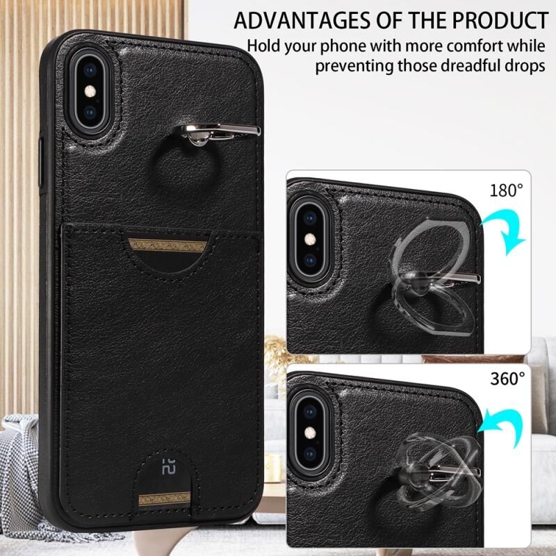 Θήκη τηλεφώνου για iPhone XS Max με υφή μοσχαριού, θήκη κάρτας και δακτύλιο στήριξης (Κόκκινο)