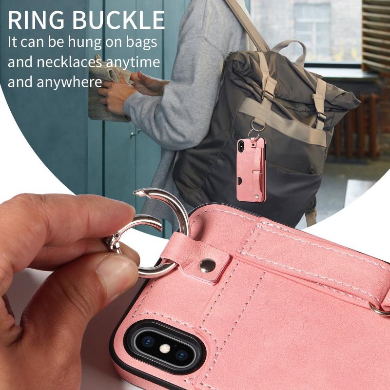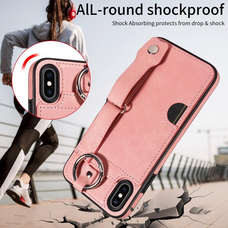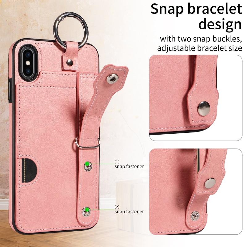 For iPhone XS Max Calf Texture Wrist Card Slot Ring Phone Case(Pink)