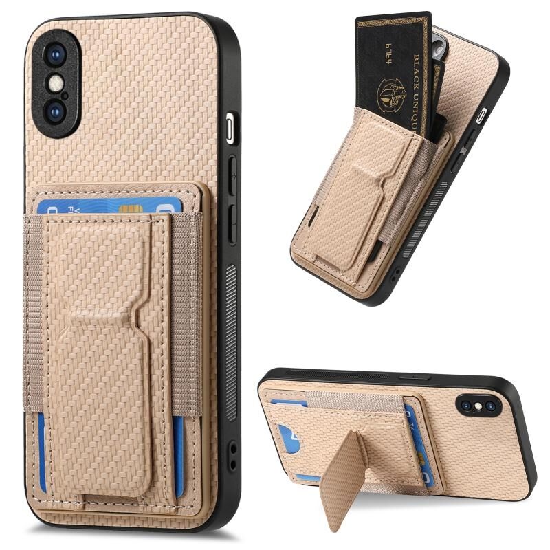 Θήκη τηλεφώνου για iPhone XS Max από ανθρακονήματα με πτυσσόμενη βάση, ελαστική θήκη για κάρτες (Μαύρο)