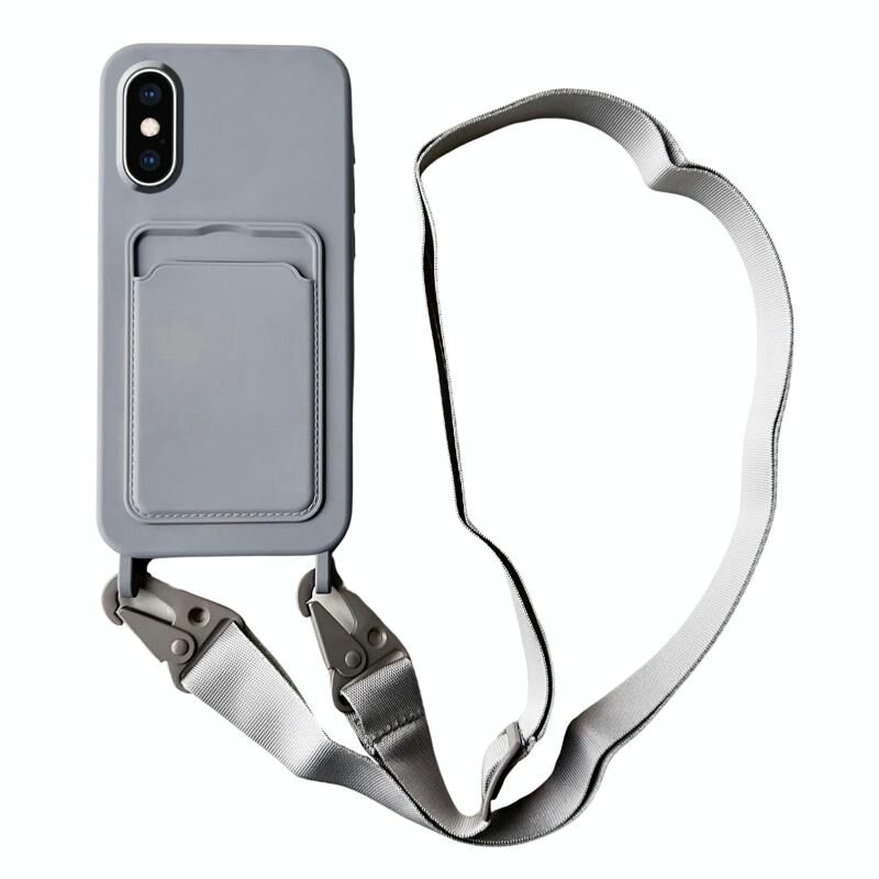 Θήκη κινητού τηλεφώνου για iPhone XS Max με θήκη κάρτας, υγρή σιλικόνη με κορδόνι (Καφέ)