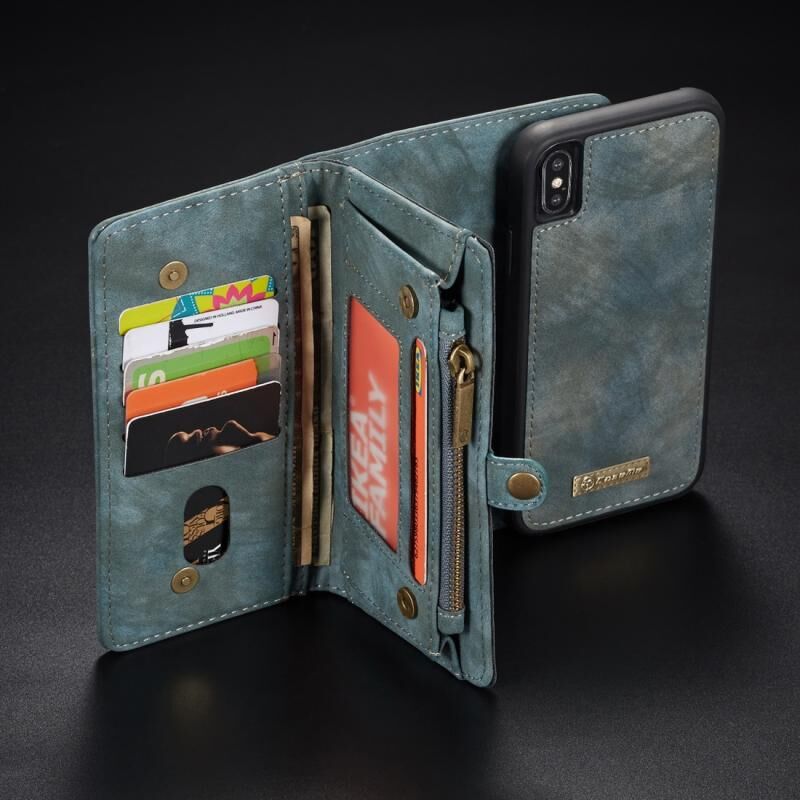 Θήκη για iPhone XS Max CaseMe, αποσπώμενη, πολυλειτουργική, οριζόντια, δερμάτινη θήκη με υποδοχή για κάρτες, βάση στήριξης, πορτοφόλι με φερμουάρ & κορνίζα φωτογραφιών (Μαύρο) (CaseMe)