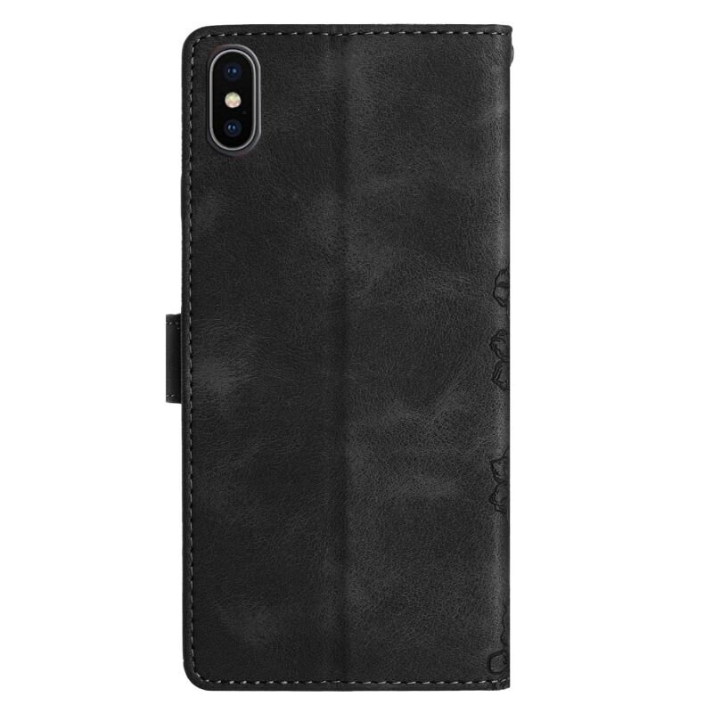 For iPhone XS Max Cherry Blossom Butterfly Skin Feel Embossed PU Phone Case(Black)