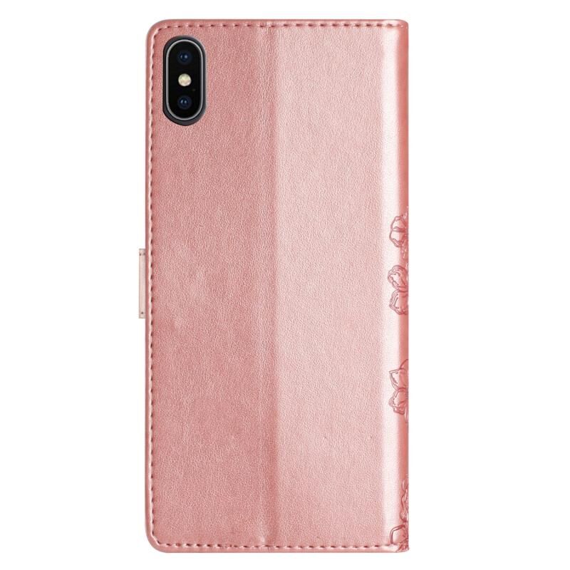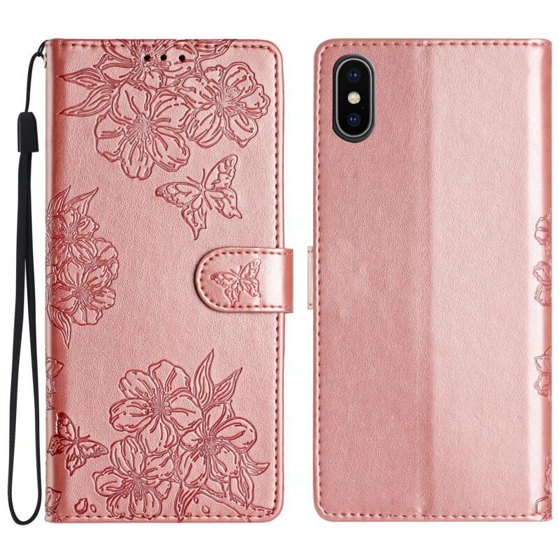 For iPhone XS Max Cherry Blossom Butterfly Skin Feel Embossed PU Phone Case(Rose Gold)