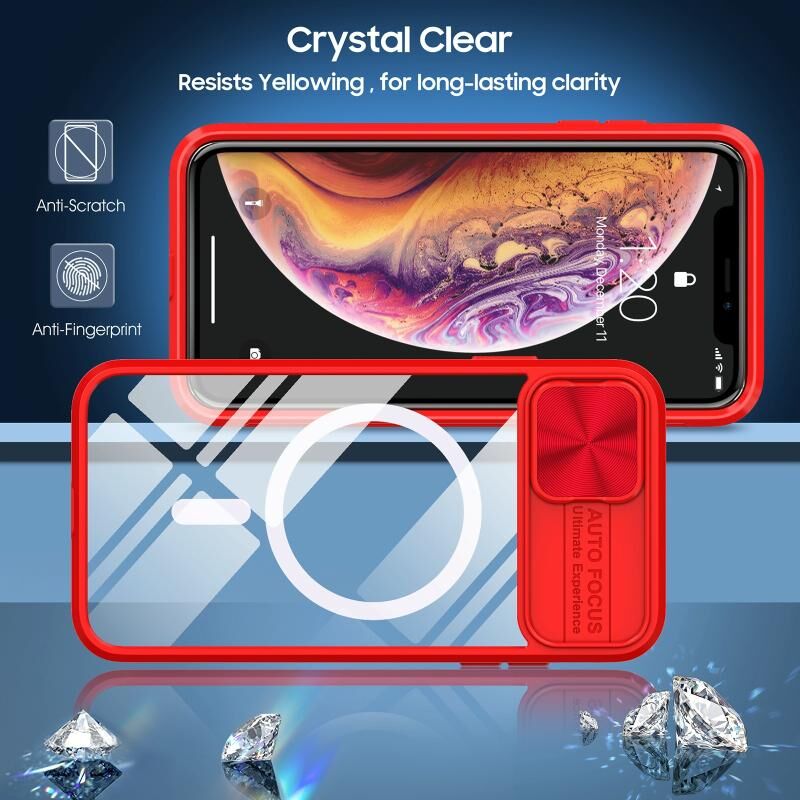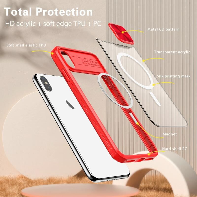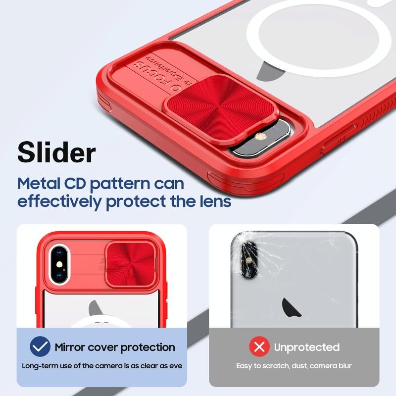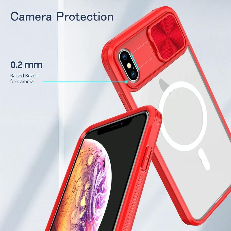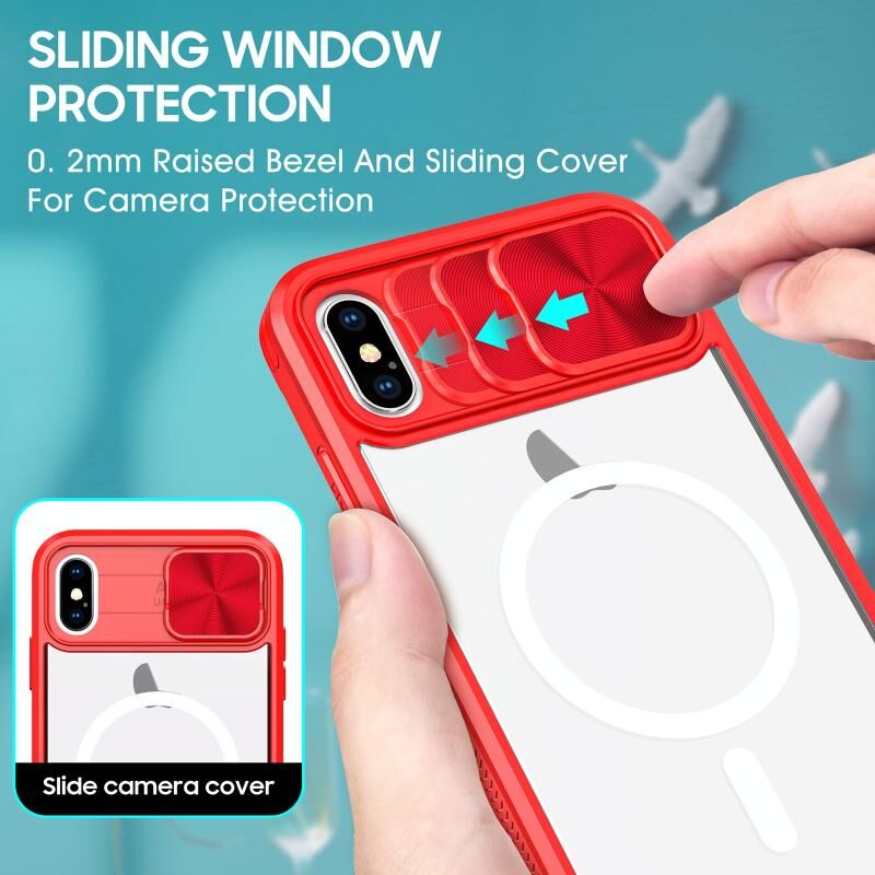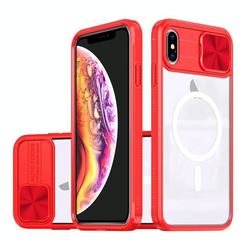 Θήκη κινητού τηλεφώνου πλήρους κάλυψης για iPhone XS Max, διαφανές ακρυλικό + PC + TPU, με συρόμενο κάλυμμα φακού MagSafe (Ροζ+Κυανό)